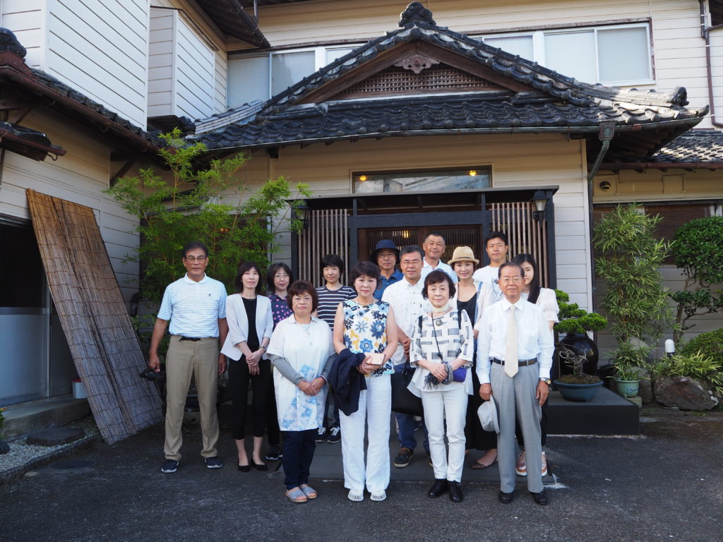 8月4日(日) 台風8号の西日本接近の予報が流れる中、快晴の伊丹空港をあとに一路南へ、1時間余りのフライトで鹿児島空港到着。お迎えの宇都監事と合流し、チャーターバスでコリノ天文台を目指します。黄昏だした午後6時過ぎに天文台へ到着するも、台風の余波か少々雲の流れが速い様子。一階のセミナー室で、加世田サイエンスクラブの宮原照昌さんから歓迎のあいさつをいただいて、天文台の稼働状況や活用状況の説明を受ける。またここで観測撮影されたスバルや天の川の写真を見せていただき感嘆する。ペーパークラフトの簡易観測盤が配られ、宮原さんご指導のもとみんな童心に還って真剣に取り組むと、あちこちから「できター!」と歓声が上がっていた。やがて陽は落ちて暮れなずみ、頃あいの時間となったので階上の観測室へと移動。しかし期待とは裏腹に天空には次々に黒い雲が流れてきて、星空観測は厳しい状況に。そんな中、望遠鏡は土星をキャッチ、鮮明に見える土星の環っかに一同大満足。すっかり暗くなった天文台を後にして午後8時すぎ、本日泊まりの村田旅館へ到着、遅めの夕食に旅の疲れを癒して早々に就寝となった。しかし深夜に宿の外を見上げると、意外にも天の川をきれいに見ることが出来た。