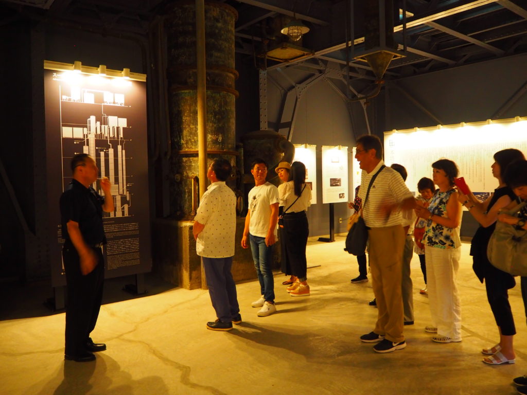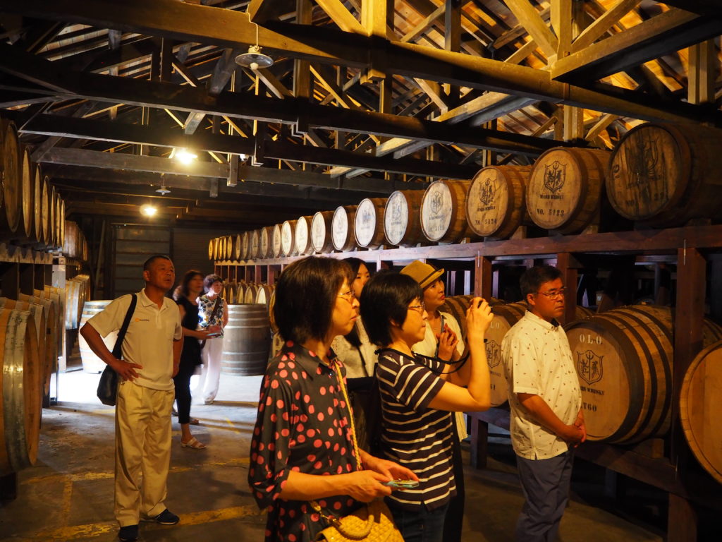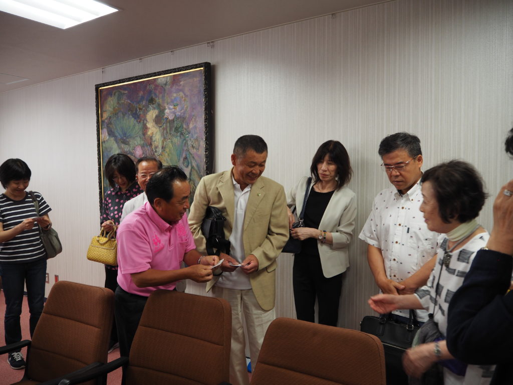 翌5日(月)は、南さつま市庁を表敬訪問した。円弧状で南向きの庁舎は明るく開放的で、南国の雰囲気がただよいとても感じが良かった。案内の窪浩一さん(南さつま商工会議所事務局長)に促されるまま二階応接室で待っていると、しばらくしてピンクのポロシャツ姿の本坊輝雄市長が現れ、あの人懐っこい笑顔で「ゆくさ、おじゃた もした」と歓迎の挨拶をされた。昨年奈良の広陵町に来られたこと、「きんぽう砂像まつり」のこと、来年開催予定の「国体」ことなどを次々とユーモアたっぷり終始笑顔で話され、あっという間に歓談予定時間が終わった。その後、記念写真を撮って10時に庁舎をあとにした。続いて今回ツアーの目玉と言うべき「マルスウイスキー」の醸造元本坊酒造津貫蒸溜所の工場見学へ向かった。気候風土を活かした70年を超える歴史とともに、日本地ウイスキーの西の雄として根強い人気を誇っている。国産ウイスキーの生みの親として名高い竹鶴政孝氏との深いゆかりがあるということであった。つぎに鹿児島観光として枕崎から開聞岳を見ながら頴娃町を経て唐船峡で昼食、知覧「武家屋敷」を見学して今夜の泊まり先「霧島ホテル」へ向かう、台風接近で雲行きが険しくなるも雨に遭うことなく無事投宿。ホテルの硫黄谷温泉は、坂本龍馬が妻のおりょうとともに新婚旅行で訪れた温泉として名を馳せているそうで、大浴場で存分に鋭気を養うことができた。夕食の後は、宇都監事監修のスライドショーで世界各地での天体観測の疑似体験を堪能させてもらった。その頃TVでは、台風が宮崎上陸の予報を告げていた。